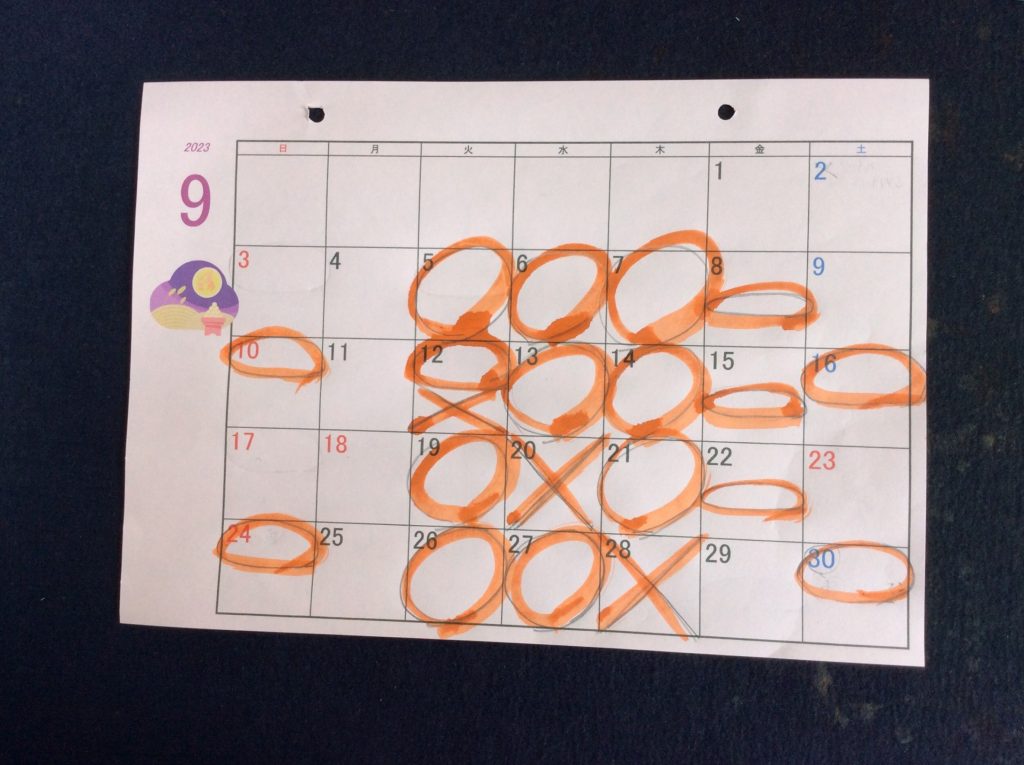 おけいこ日/お知らせ 令和5(2023)年9月のお稽古日 2023年8月15日 by rakuyusyo 令和5年(2023)年9月のお稽古日は以下の通りです。 5日(火)、6日(水)、7日(木)、8日(金)、10日(日)、12日(火)、13日(水)、14日(木)、15日(金)、16日(土)、19日(火)、21日(木)、22日(金)、24日(日)、26日(火)、27日(水)、30日(土) Follow me! FacebookXHatenaPocketCopy rakuyusyo