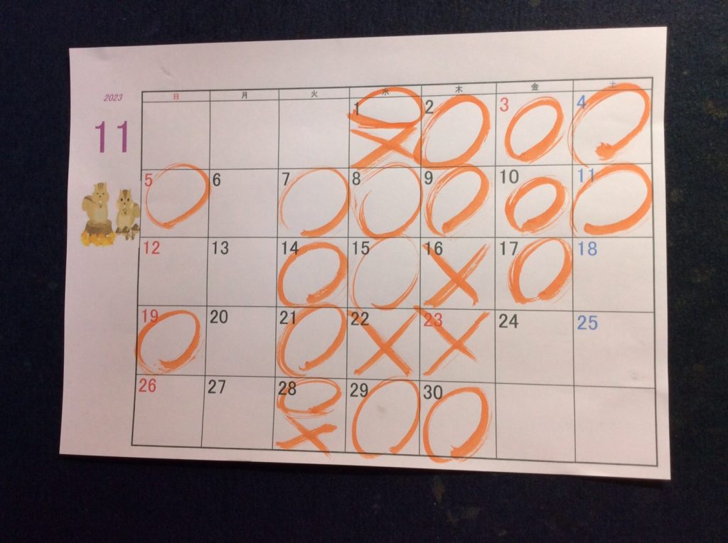 おけいこ日/お知らせ 令和5(2023)年11月のお稽古日 2023年10月27日 by rakuyusyo 令和5年(2023)年11月のお稽古日は以下の通りです。 1日(水)、2日(木)、3日(祝・金)、4日(土)、5日(日)、7日(火)、8日(水)、9日(木)、10日(金)、11日(土)、14日(火)、15日(水)、17日(金)、19日(日)、21日(火)、28日(火)、29日(水)、30日(木) Follow me! FacebookXHatenaPocketCopy rakuyusyo